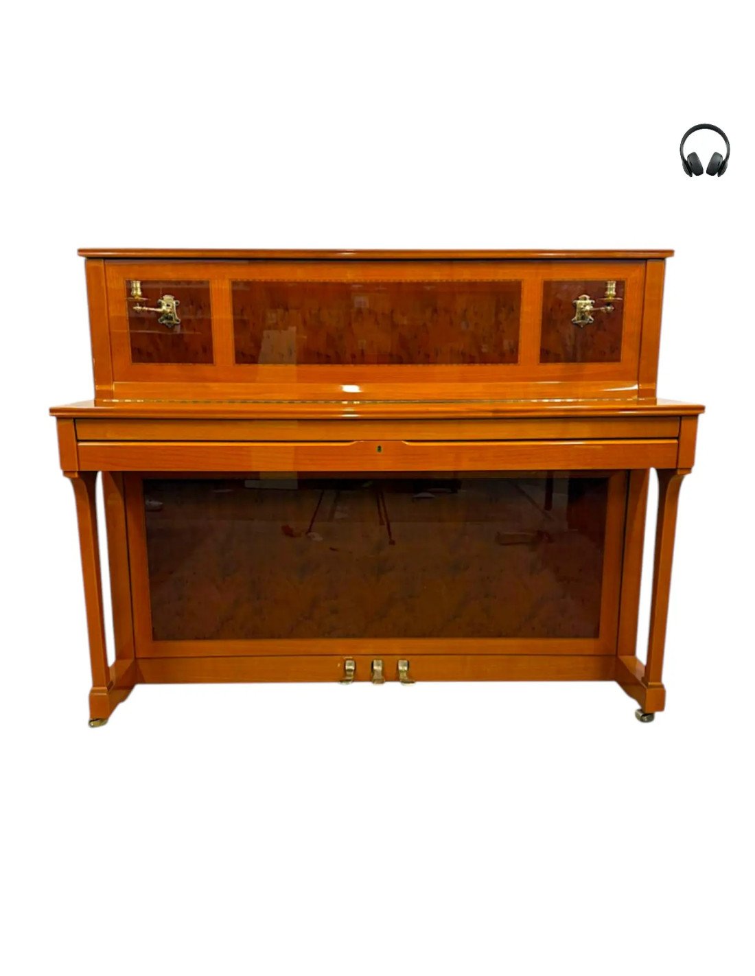 Certains pianos sont vus et revus, d'autres se rapprochent de véritables pièces de collections. C'est définitivement cette seconde catégorie que rejoint ce modèle de chez Schimmel . Avec sa marqueterie et sa finition merisier brillant, nous pourrions écrire un livre uniquement sur son esthétique. Mais il faudrait sans doute un second ouvrage pour décrire la qualité de sa sonorité. Riche, pleine, subtile, le premier vendeur de piano allemand au monde nous démontre une nouvelle fois avec ce modèle l'étendu de son savoir-faire.