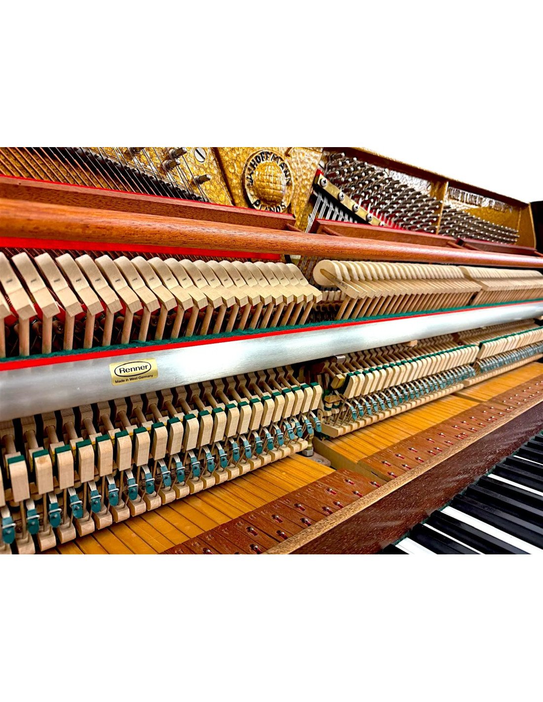 Ce piano droit Hoffmann 114 de 1981 marque une époque bénie dans la manufacture haut de gamme de piano. Issu de la mythique usine de Langlaü en Allemagne, ce modèle a bénéficié de tout le savoir-faire de l'époque. Equipé d'une mécanique Renner de pointe, le toucher est à la fois moelleux et d'une grande précision sur l'ensemble du clavier.